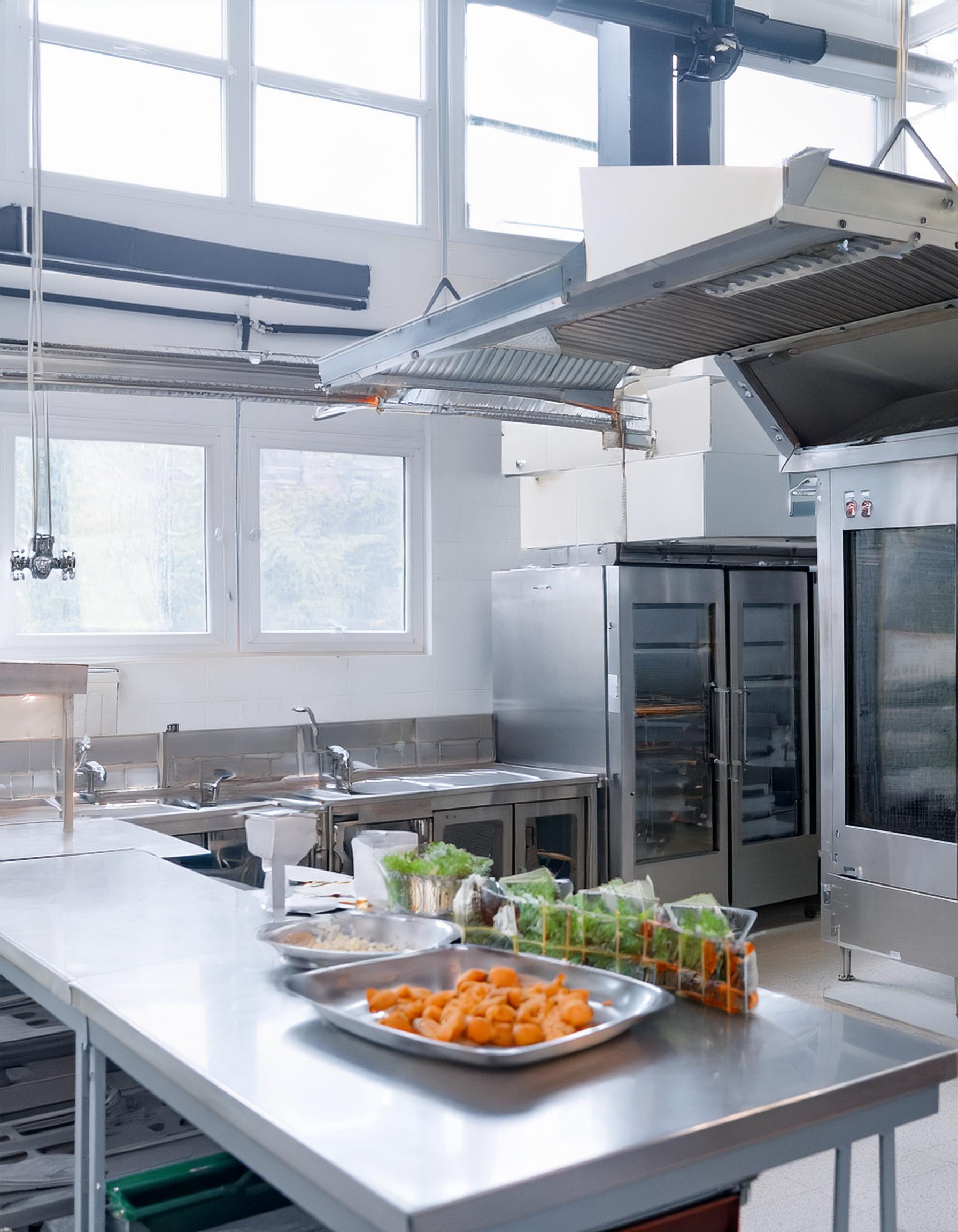 Firefly Chef manejando alimentos en una Cocina industrial con alimentos visiblemente limpios. el amb